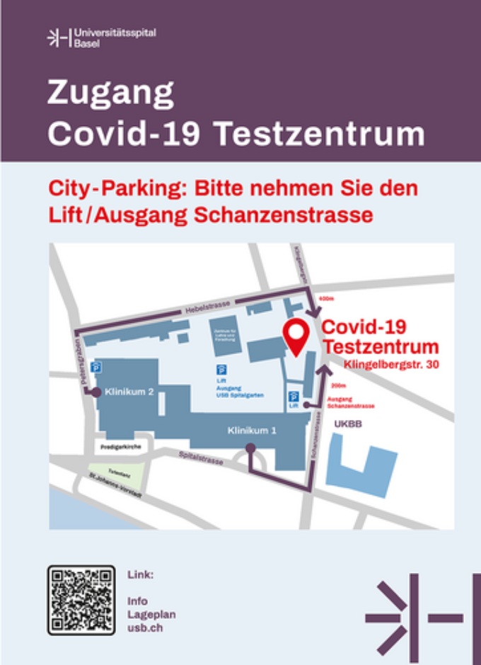 The test center at the University Hospital Basel (USB) was closed on 31 January 2023. You can find other test centers here on the website of the Basel-Stadt Department of Health.