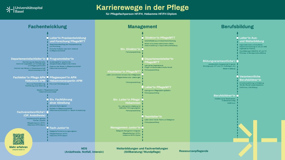 Drei Karrierewege für Pflegefachpersonen am Universitätsspital Basel