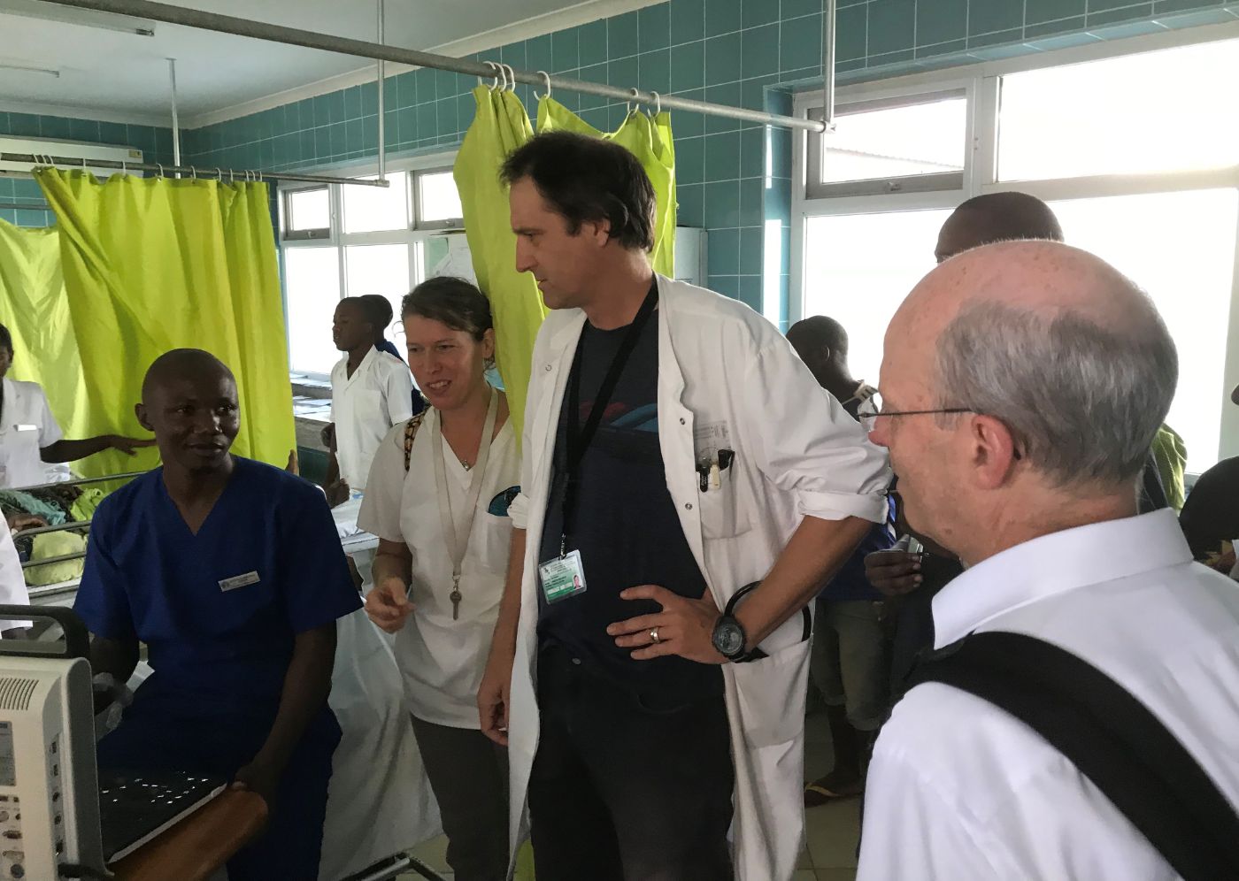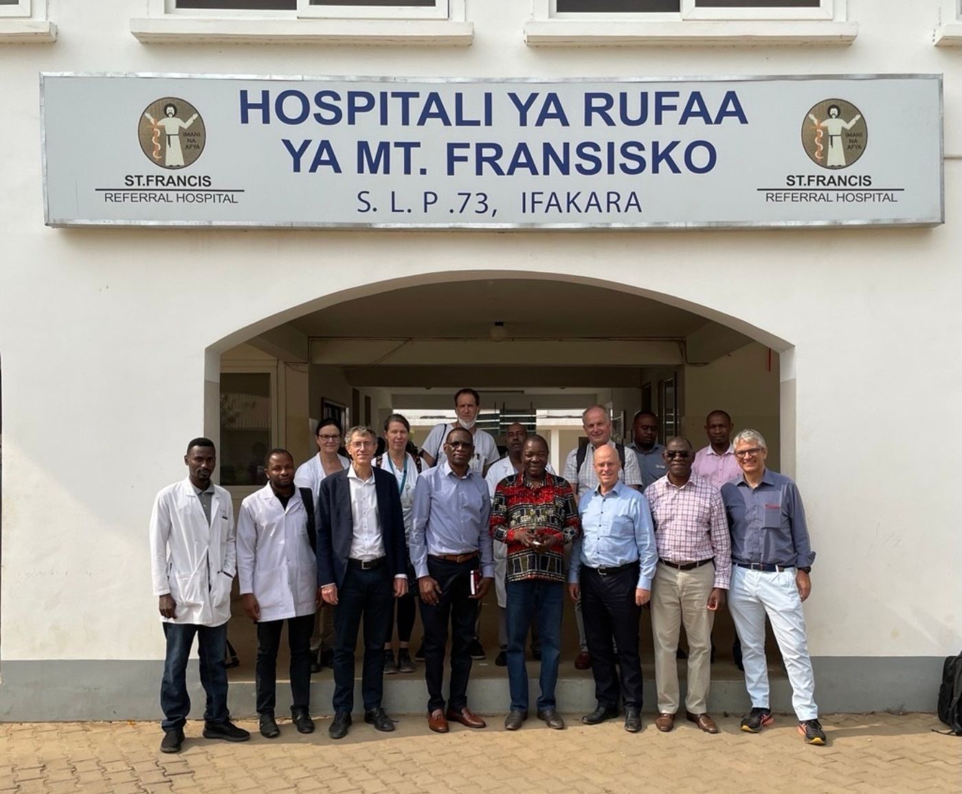 * Besuch am St. Francis Regional Referral Hospital: Links nach rechts: Dr. Andrew Katende (Leiter Herz und Lungenklinik, Ifakara Health Insitute (IHI)), Dr. Ezekiel Luoga (Leiter Chronic Diseases, Clinic IHI), Christine Fankhauser (Administation, Department Medizin, Schweizerisches Tropen und Public Health Institute (SwissTPH), Prof. Jürg Utzinger (Direktor SwissTPH), Prof. Maja Weisser (Leitende Aerztin Klinik für Infektiologie Universitätsspital Basel (USB), Klinische Forschungskoordinatorin CDCI), Frederick Masanja, (Branch Manager Ifakara, IHI), PD Dr. Martin Rohacek (Forschungsgruppenleiter SwissTPH, Leiter Herzlungen Klinikprojekt, Projekt Notfallstation und Intermediate Care, St. Francis Regional Referral Hospital (SFRRH), Dr. Fassil Gebreegziabher (Leiter Chirurgie SFRRH), Father Ndege (Direktor SFFRH), Prof. Christian Lengeler (Forschungsgruppenleiter, Tanzania Verantwortung, SwissTPH), Dr. Werner Kübler (CEO USB), Dr. Honorati Masanja (CEO IHI), Prof. Manuel Battegay (ehemaliger Chefarzt Klinik für Infektiologie, Vorstand USB)
