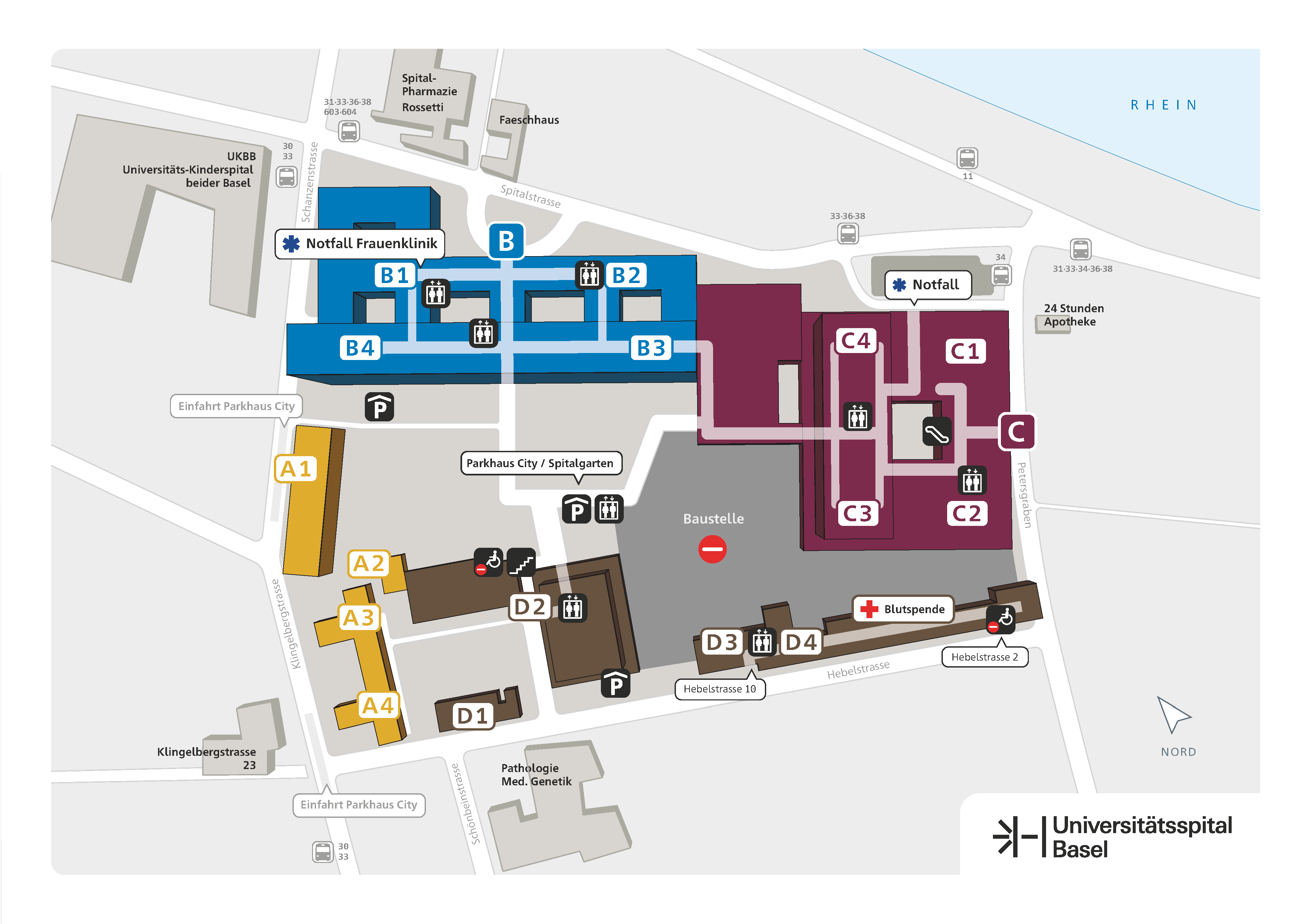 | Benutzen Sie bitte das Parkhaus City, Einfahrt Schanzenstrasse oder Klingelbergstrasse. |