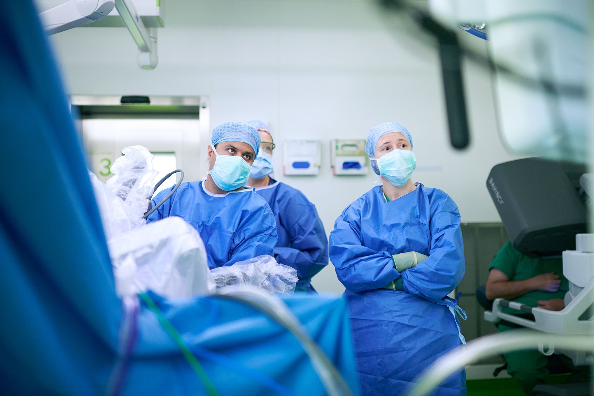 Die vollständige operative Entfernung der Prostata (radikale Prostatektomie) empfiehlt sich bei organbegrenztem Krebswachstum. Diese Option ist die derzeit am häufigsten angewandte und sehr bewährte Methode. Unser Schwerpunkt liegt dabei in der minimal-invasiven, roboterassistierten Operation mit dem Da Vinci®-System. Hier nimmt der Operateur den Eingriff mit mikrochirurgischen Instrumenten und einer Kamera, welche vom Roboter gehalten wird, über kleine Bauchschnitte vor. Unsere Erfahrung zeigt, dass Patienten nach dieser Operation weniger Schmerzen haben, schneller mobil sind und früher nach Hause gehen können verglichen mit Patienten, welche über einen grossen Bauchschnitt offen operiert werden.